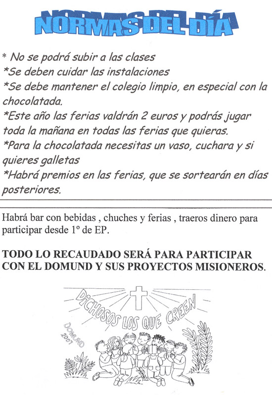 en este dia nos lo pasamos geniallllll iendo a las feria montadas por los de segundaria menos mal k el año viene ya las podremos montar nosotros ya k somos los mayores de primaria k guayyyyyyyyyyyy