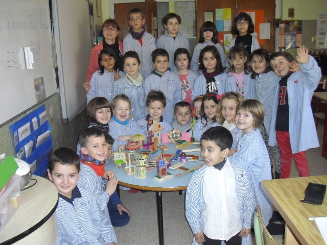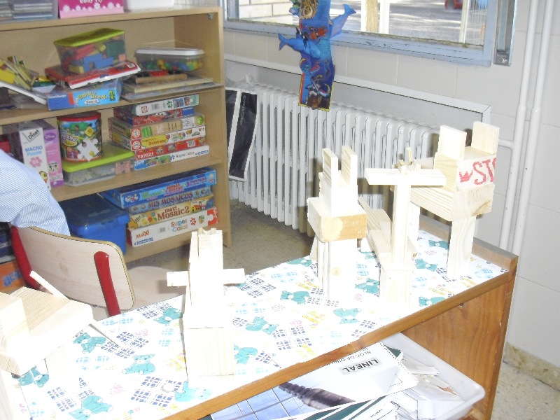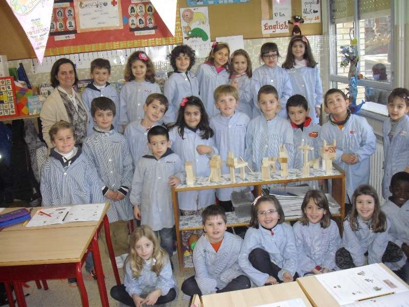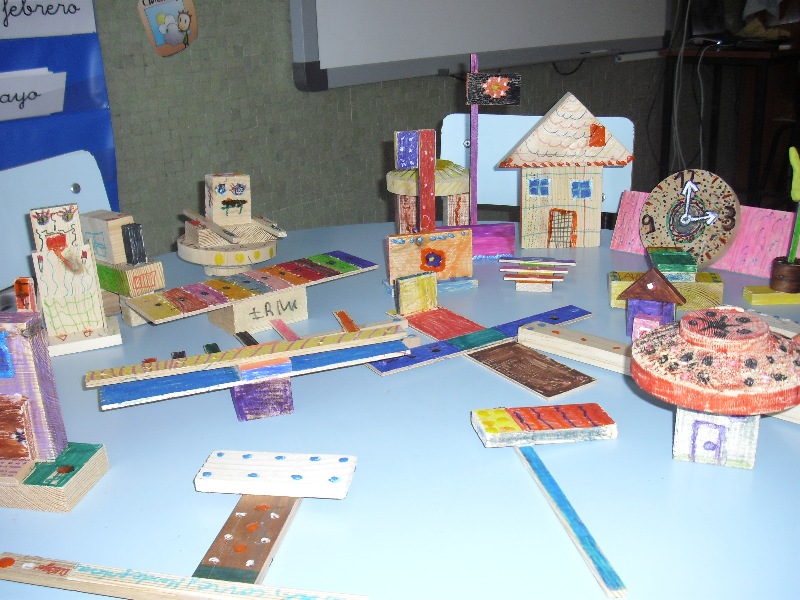 Los niños de 1º de E.P. agradecen al papá de Lucas Sanz todas estas maderitas que nos ha traído a clase