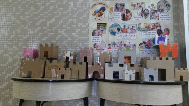 papás, que se interesan por lo quehacemos en el cole nos han ayudado a construir estos bonitos castillos.