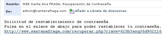 4. Comprueba ahora tu bandeja de entrada y abre el mensaje que habrás recibido de admin@santanafraga.com. Este correo lleva un enlace en el que deberás hacer clic para dirigirte al último paso.