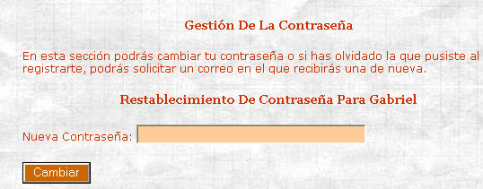 5. Finalmente en esta pantalla, ya puedes escribir tu nueva contraseña y pulsar el botón Cambiar. A partir de este momento ya puedes identificarte.