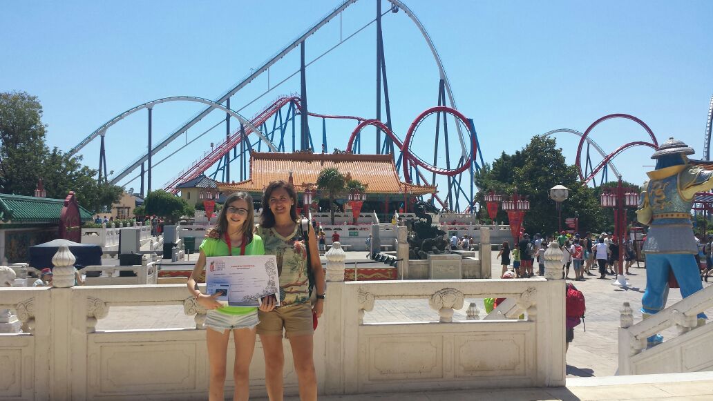 “Desde que ocurrió aquello no podía estarme quieto”; éste era el título del relato que Inés escribió y con el que triunfó, ya que consiguió un 1º puesto muy merecido. Después de recoger el premio, en el Gran Teatro Imperial de Port Aventura, pudo disfrutar junto a su familia de las atracciones que ofrece el parque.