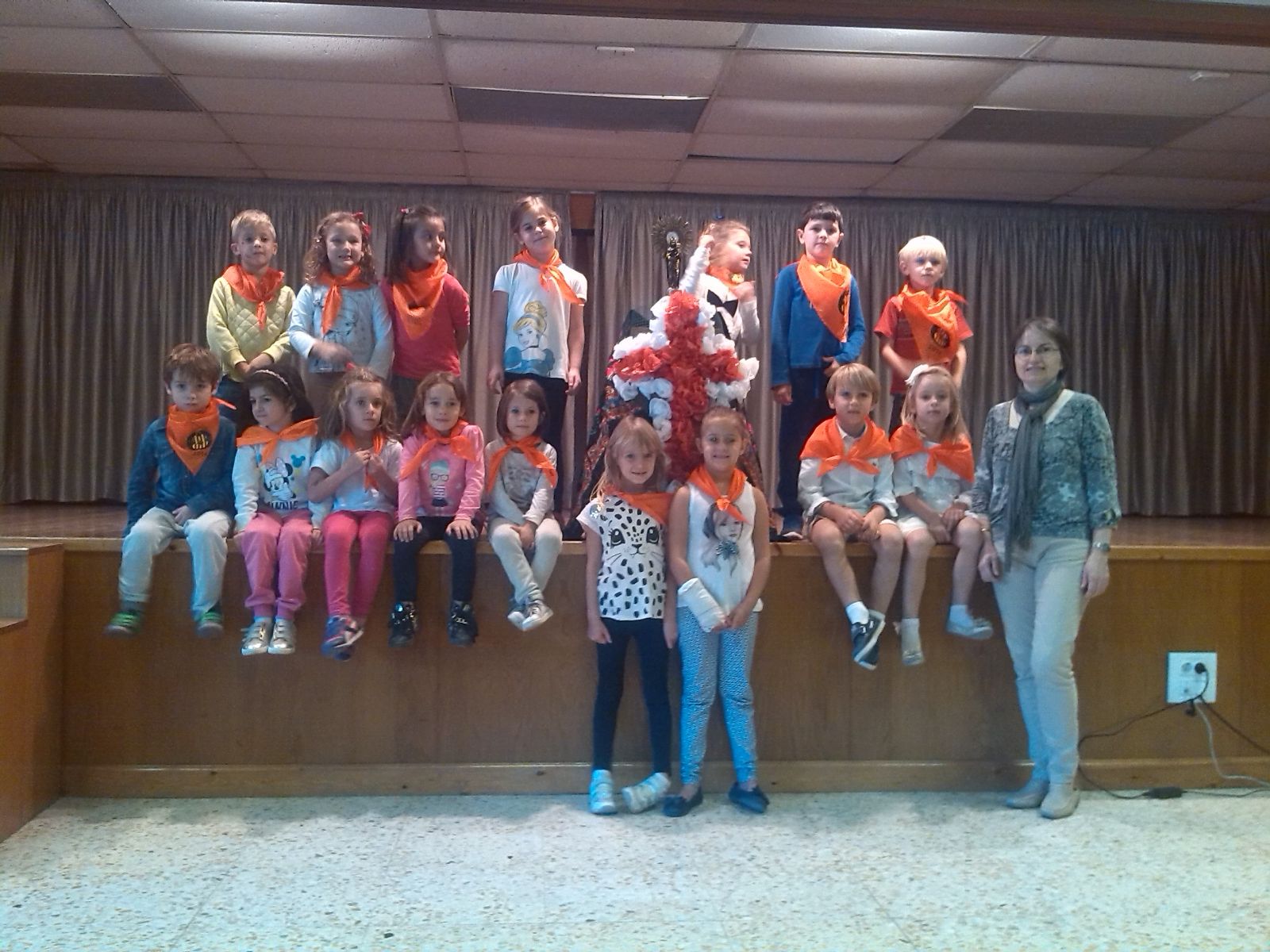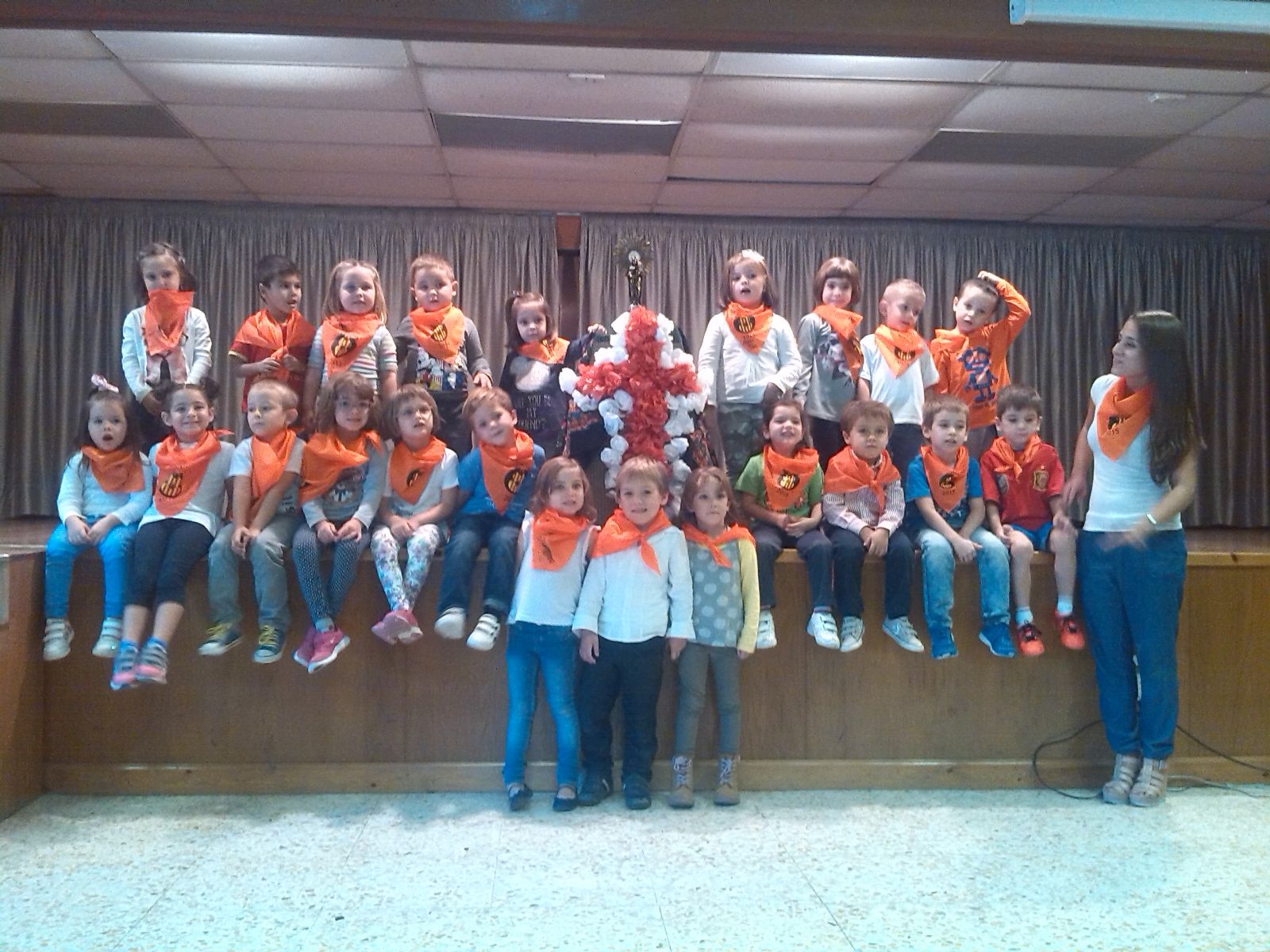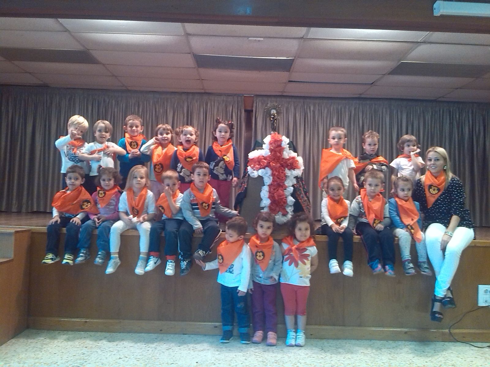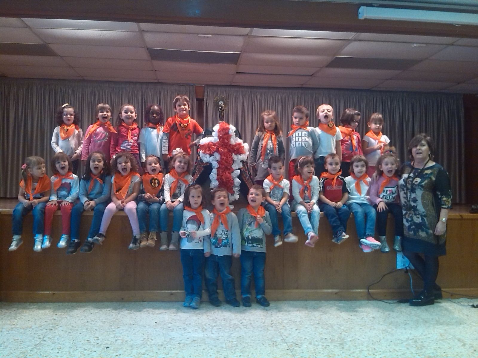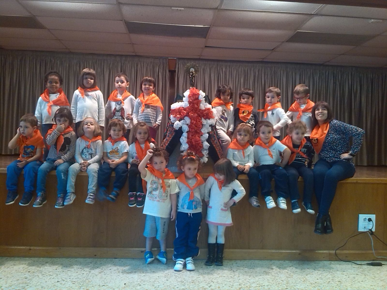 Aquí estamos todos, en el salón de actos, esperando nuestro turno para afrecer nuestra rosa a la Virgen del Pilar.