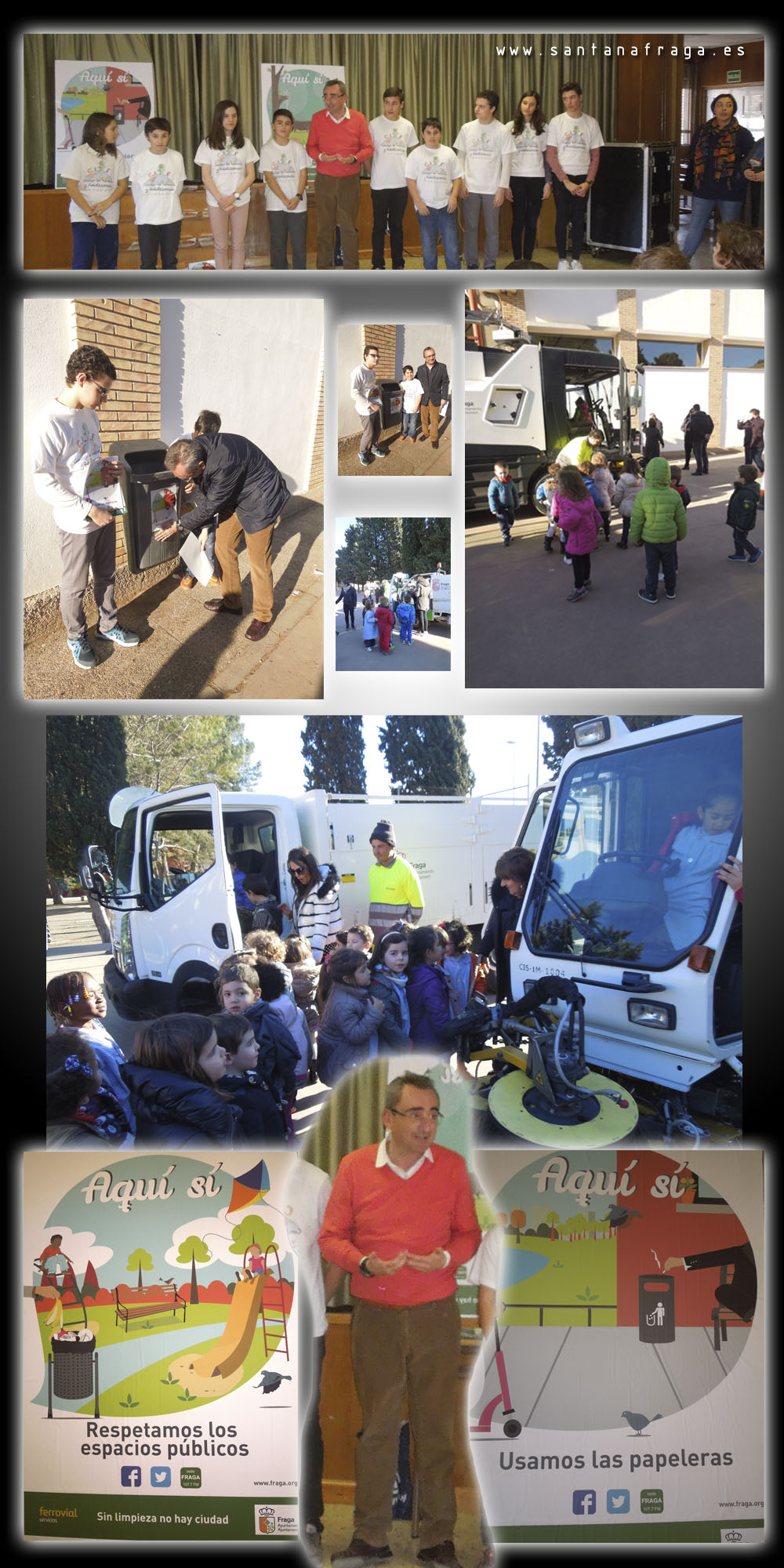 El pasado 25 de febrero por la tarde los alumnos del colegio que forman parte del Consejo de la Infancia y la Adolescencia de Fraga acompañados por el alcalde, dos concejales y el técnico, presentaron la nueva campaña de limpieza de la ciudad. Primero leyeron un manifiesto y después los alumnos pudieron montarse en las maquinas que ayudan a mantener Fraga limpia.
