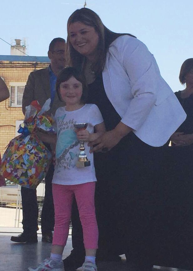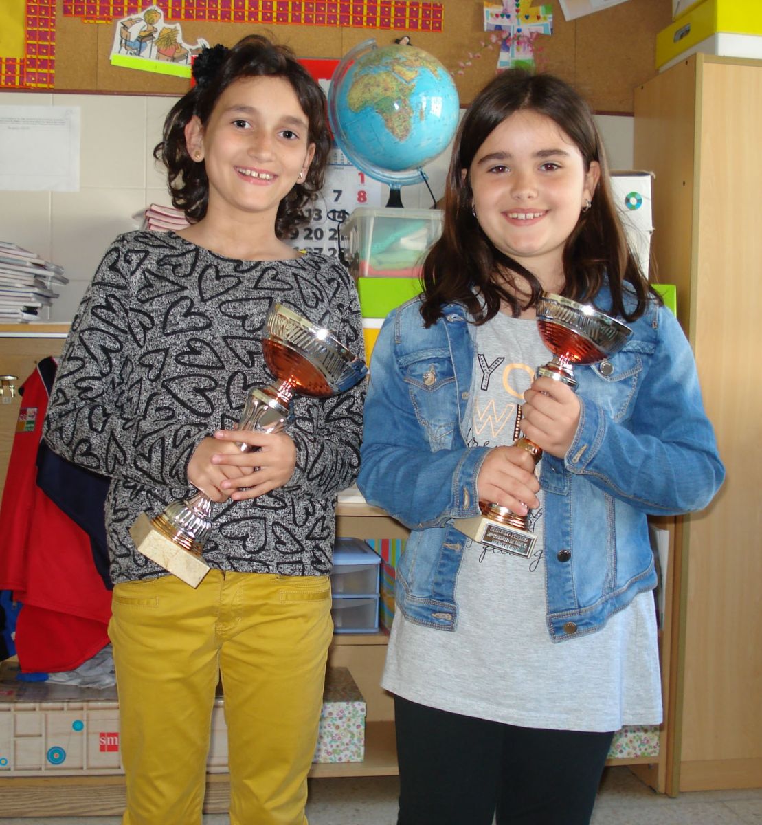 Chloe y Neus hoy en clase con sus flamantes trofeos