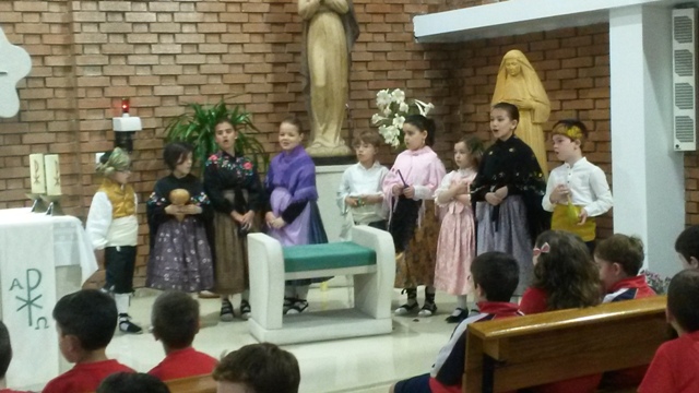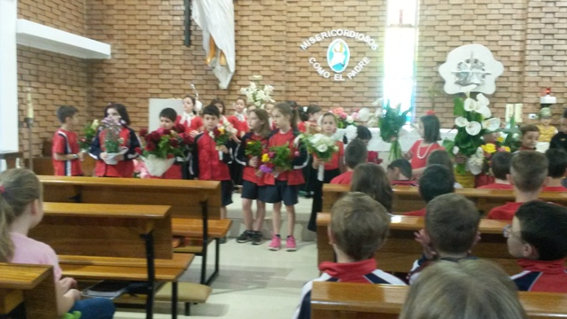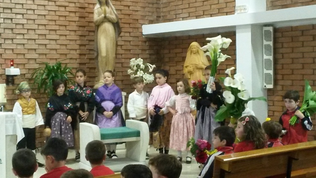 Los niños y niñas de Primero y Segundo celebramos durante el mes de mayo, el mes de María. Cada día en nuestra oración le dedicábamos una canción, una poesía, un pensamiento, un piropo ,a la Virgen… Para finalizar el mes acudimos a la capilla de la Residencia de las Hermanas de la Caridad de Santa Ana e hicimos una celebración muy bonita y participativa en la que cada grupo preparó algo bonito para ofrecerle a nuestra mamá del Cielo.