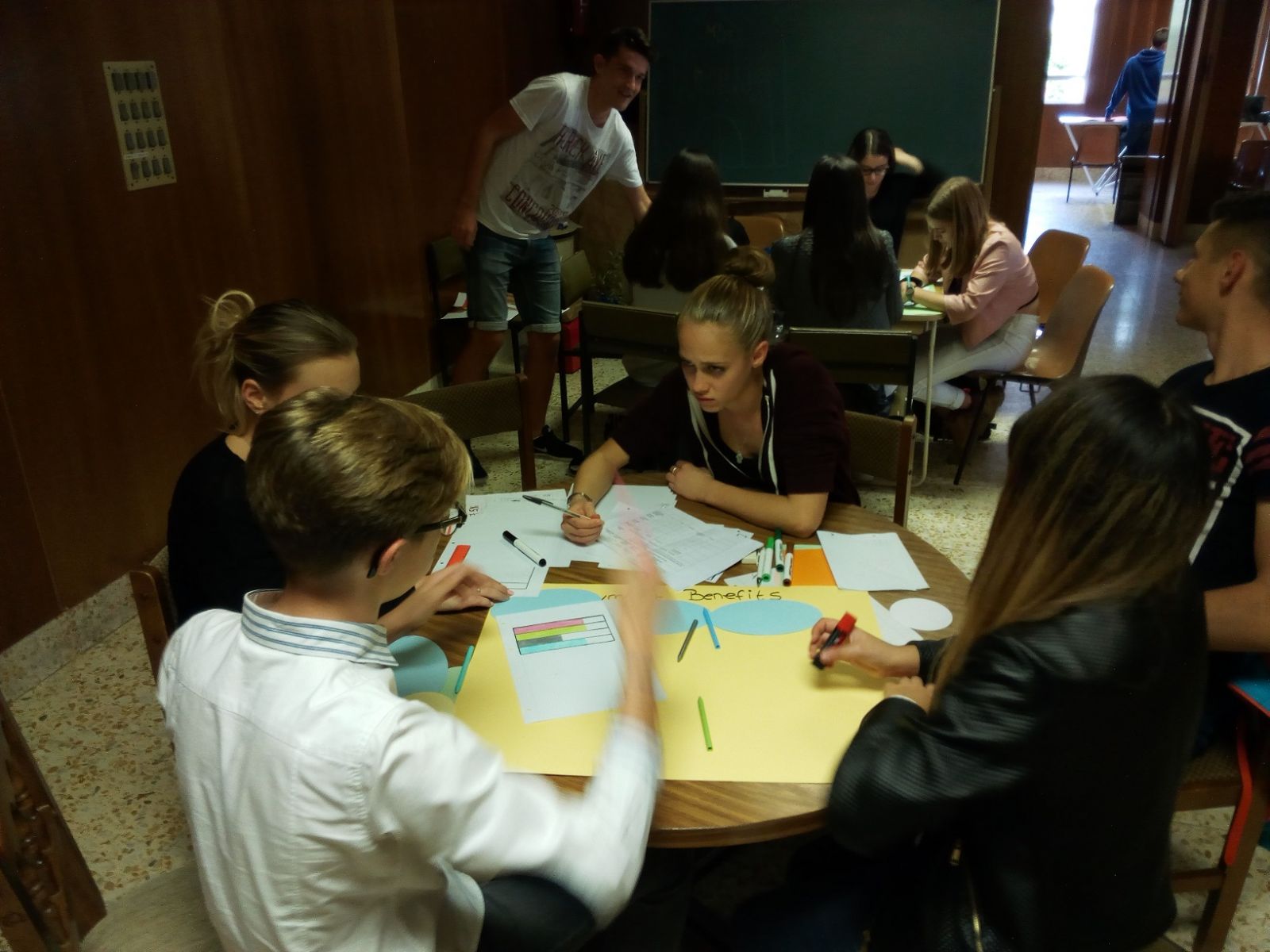 Tras las exposiciones orales de todos los participantes sobre el sector económico destacado en su zona, se juntaron en grupos internacionales para comparar los datos económicos de los diferentes países y crear unos posters.