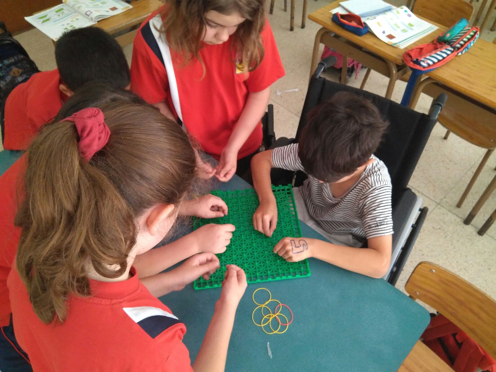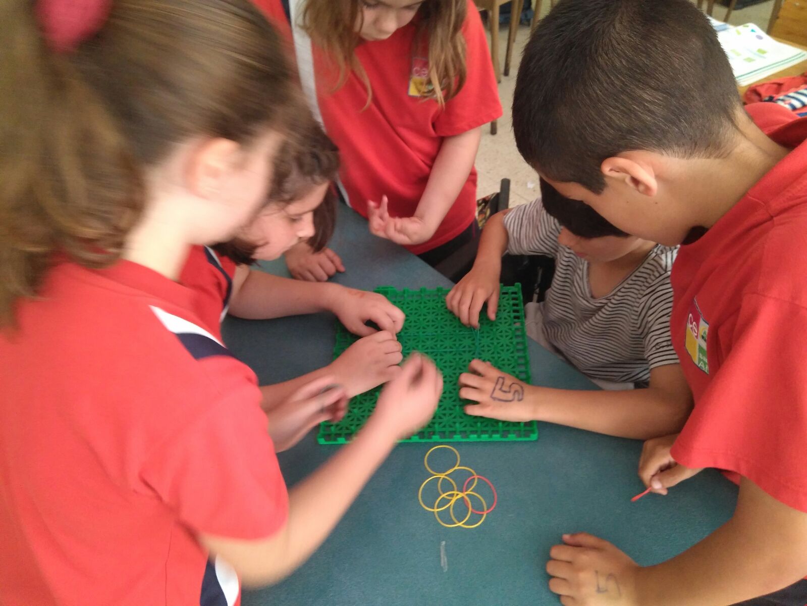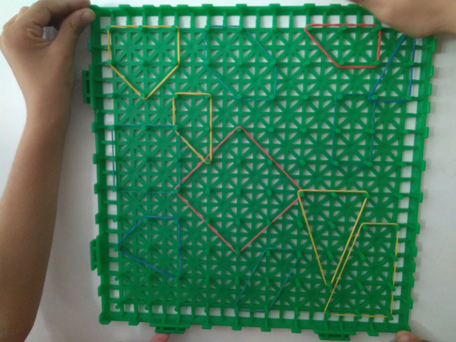Esta mañana, los alumnos de tercero, hemos utilizado los geoplanos para trabajar la geometría de manera manipulativa.