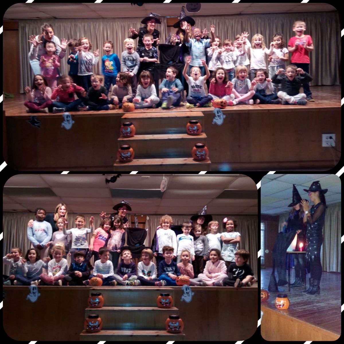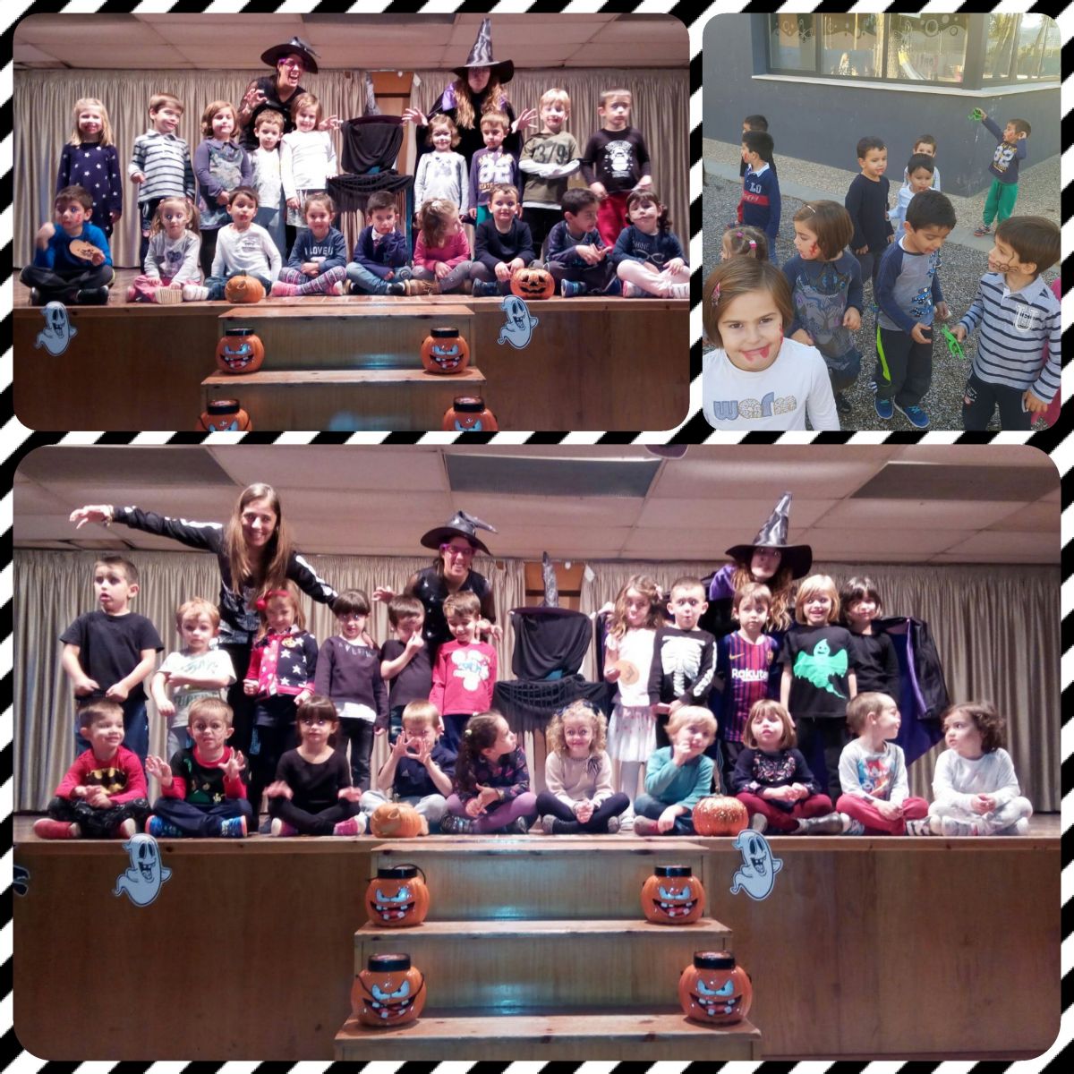 This week, the kindergarten kids went to the hall in different occasions. First of all (and characterized for the celebration), we met in this place in order to help the witches to make a magic potion, but before to start we sang the Halloween songs, that we have learnt the previous days in the English class.