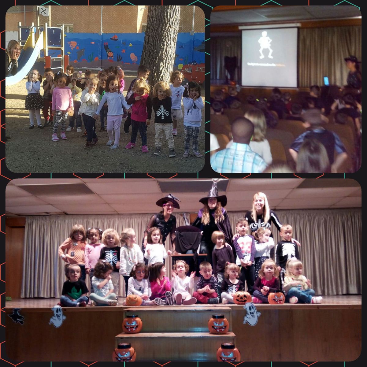 Ante una semana llena de celebraciones, los niños y niñas de Educación Infantil hemos visitado el salón de actos en varias ocasiones. En primer lugar (y caracterizados como la fiesta requería), nos reunimos para ayudar a las brujas a realizar una pócima mágica, pero no sin antes cantar las canciones de Halloween anteriormente trabajadas en inglés.