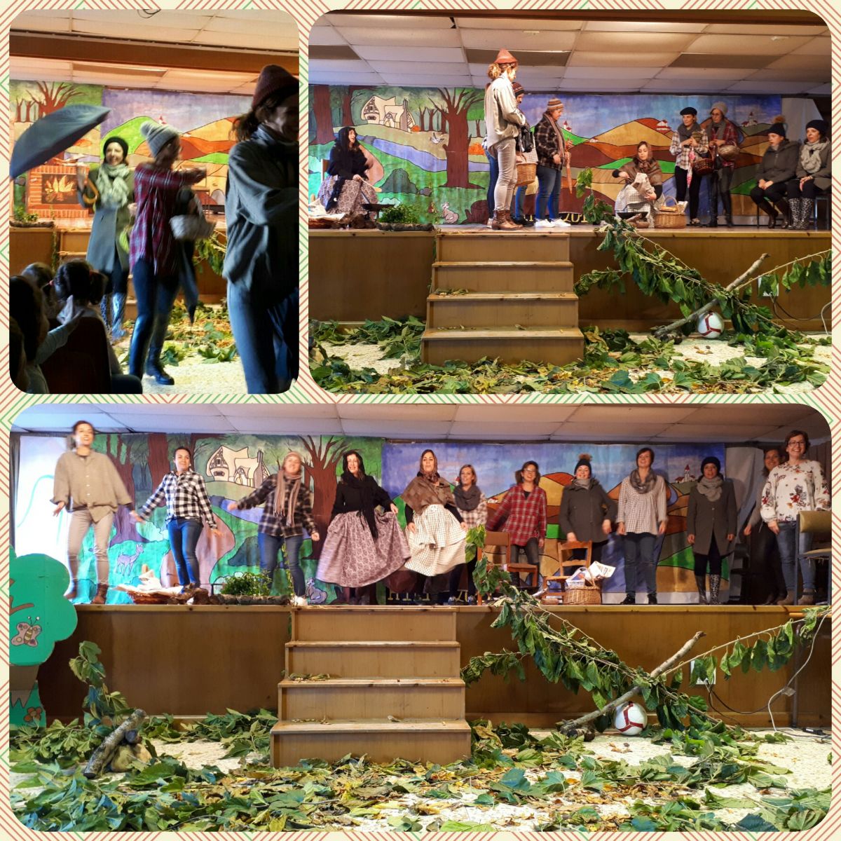 Al día siguiente nos desplazamos al salón para celebrar otra fiesta muy típica de nuestra zona: La Castañada. Para ello disfrutamos de un teatro magnífico preparado con mucha ilusión por nuestras mamás encargadas.