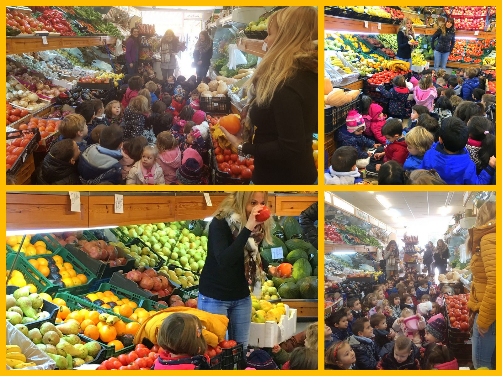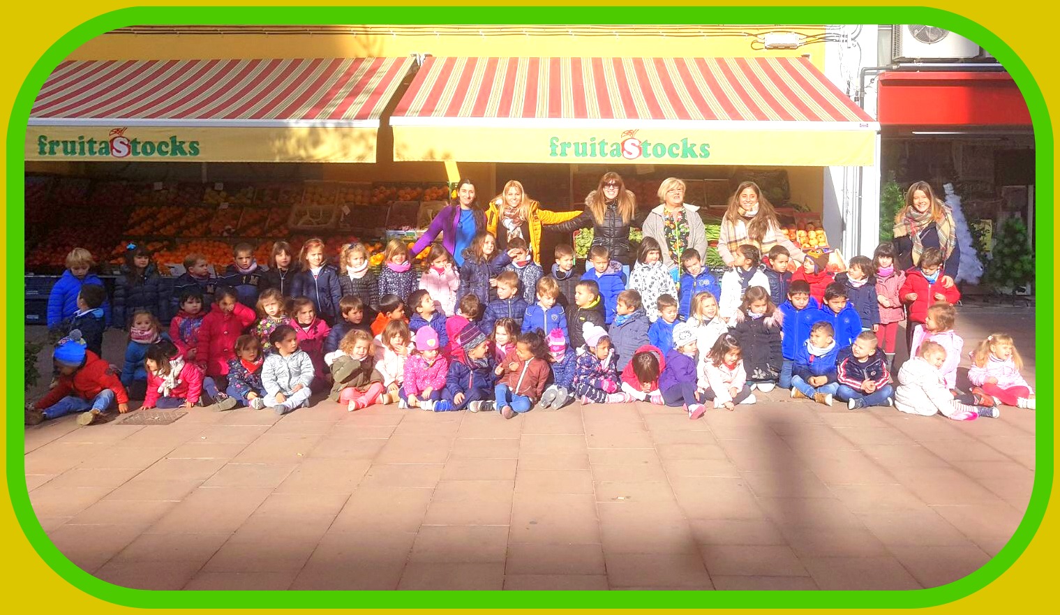 Los niños de 3 y 4 años nos unimos para poner en común los conocimientos aprendidos del otoño. Tras una primera visita a ``La Pinada´´, para comprobar las consecuencias físicas que esta estación ha producido en nuestra ciudad, fuimos a visitar la verdulería FRUITA STOCKS donde Mª Àngels y Yolanda nos enseñaron las frutas y frutos propios de otoño.