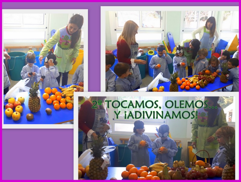 - TACTO/OLFATO: tapándonos los ojos y sin hacer trampas, debíamos averiguar de qué fruta se trataba.