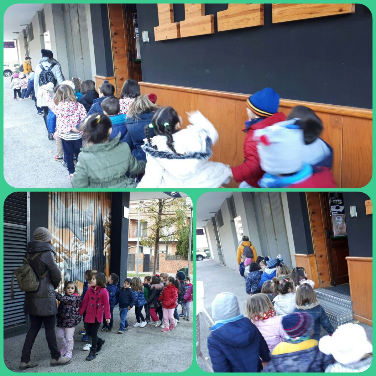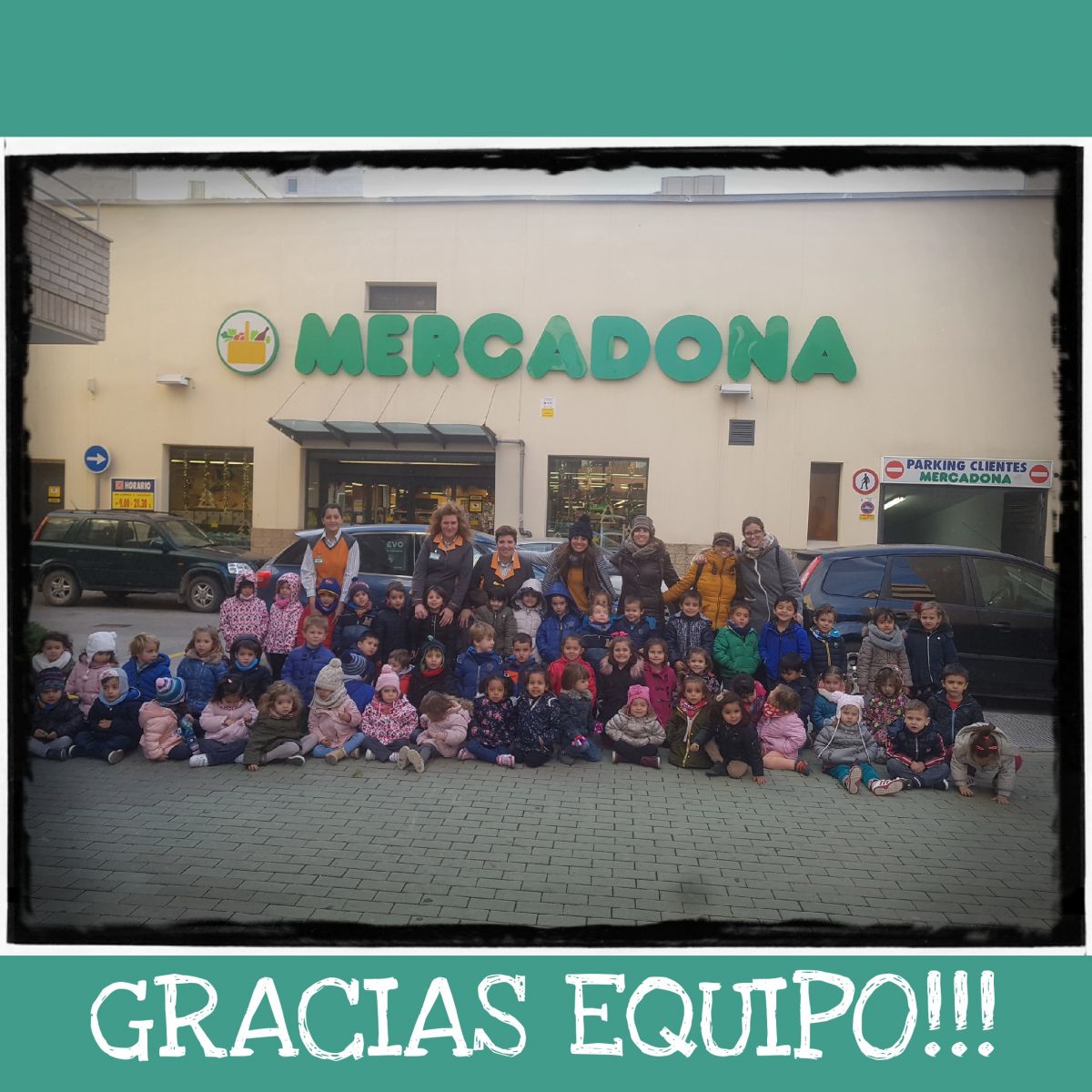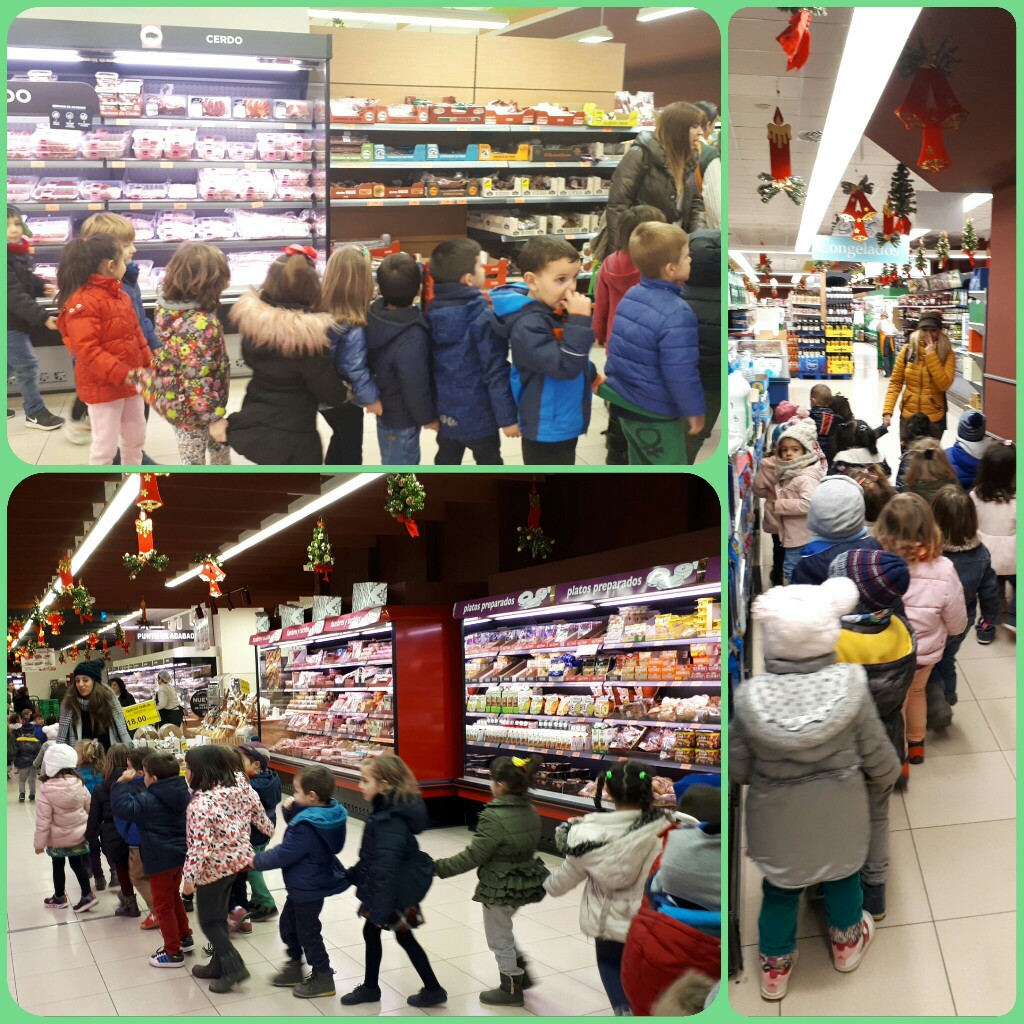 Esta tarde, los chicos y chicas de P-3 y P-4, nos hemos abrigado bien y nos hemos puesto en camino para llegar cuanto antes al supermercado donde trabajan varias de nuestras mamás.