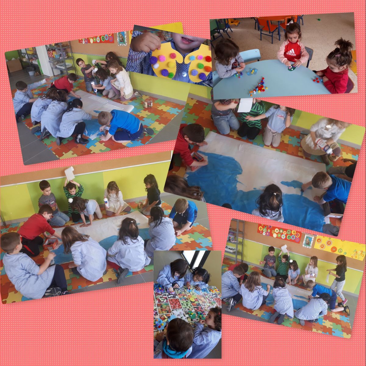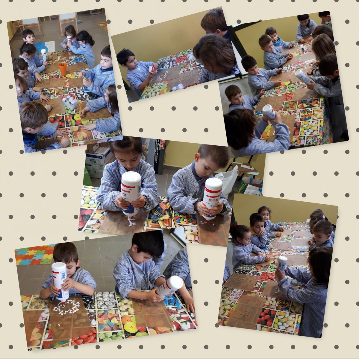 Girando en torno al eje central del invierno, los diferentes grupos han elaborado la decoración, utilizando diferentes técnicas: