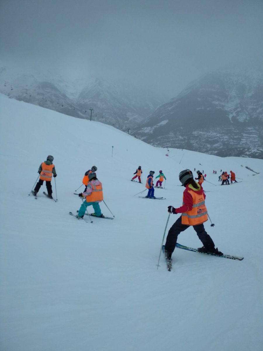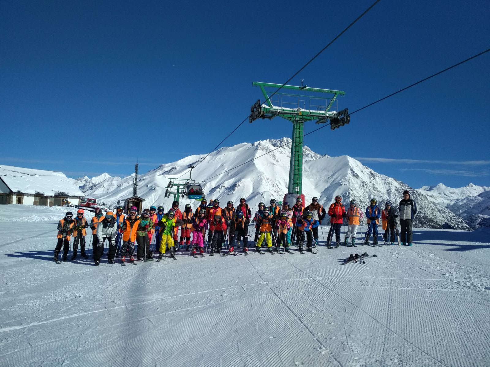 El jueves el tiempo había vuelto a cambiar, nos tocó un día de lluvia que afrontamos de la mejor manera posible. Llegamos a las pistas sin problemas y a las 10 empezamos nuestras clases. Tras 2 horas de práctica, bajo una lluvia que no cesaba, hicimos una pausa para secarnos un poco, comer y cargar las pilas para seguir esquiando. Sobre las 3 decidimos que ya era suficiente y nos volvimos al albergue (esta vez en autobús) para ducharnos, merendar y realizar el último de los talleres programados sobre huellas de animales. Por la noche, y para despedirnos por todo lo alto de nuestro "hogar", nos organizaron una fiesta que acabó con la poca energía que a los niños les quedaba. El viernes nos despertamos con un sol radiante que presagiaba una última jornada de esquí idónea, como así fue. Nos hicimos la "foto oficial" con todos los alumnos y profes y disfrutamos bajando pistas verdes, azules y algunos incluso rojas. Si el miércoles me sorprendía el progreso de los alumnos, este viernes mi sorpresa era mayúscula al ver la facilidad con la que esquiaban. Pero ya lo dicen, todo lo bueno se acaba, y sobre las 3 de la tarde nuestra semana se acabó, subimos al bus y pusimos rumbo a Fraga con una sonrisa en la cara y la sensación de haber disfrutado al máximo de esta semana en Panticosa.