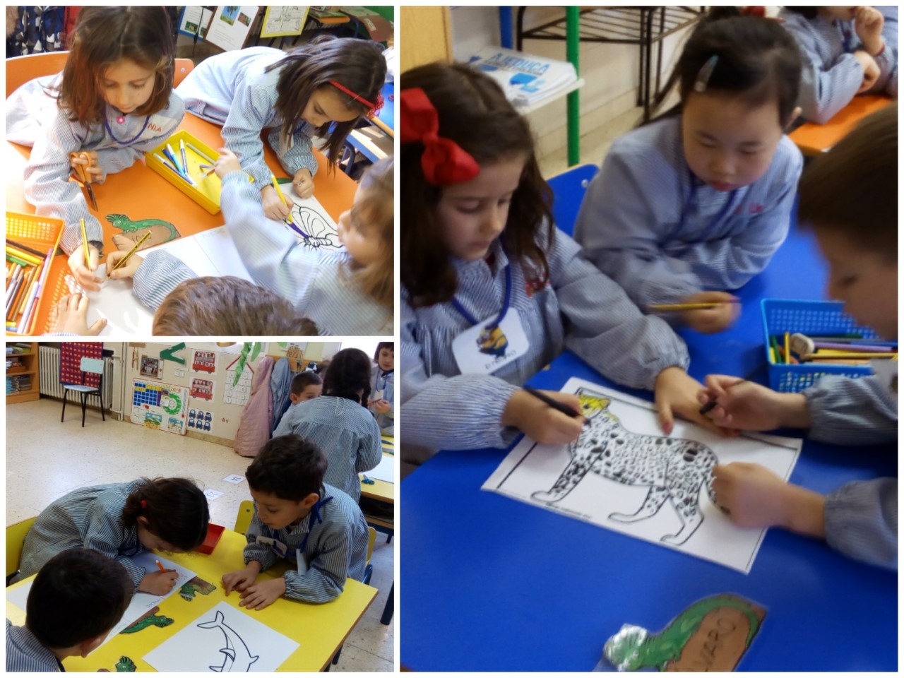 Los alumnos de 5 años de Educación infantil trabajan el proyecto de "LA SELVA AMAZÓNICA" a partir de grupos cooperativos.