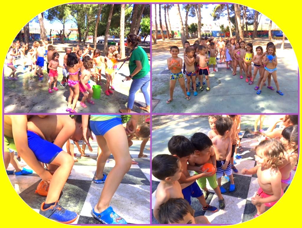 DESPUÉS DEL ALMUERZO NOS PREPARAMOS PARA LA OCASIÓN CON NUESTROS BAÑADORES Y CHANCLAS. NUESTRAS SEÑOS HABÍAN PREPARADO JUEGOS CHULÍSIMOS PARA DISFRUTAR DE UNA MAÑANA DIFERENTE CON NUESTROS COMPIS COMO: EL GLOBO DE AGUA, TRANSPORTISTAS DE AGUA, HACEMOS BURBUJAS Y TE MOJO A TI!