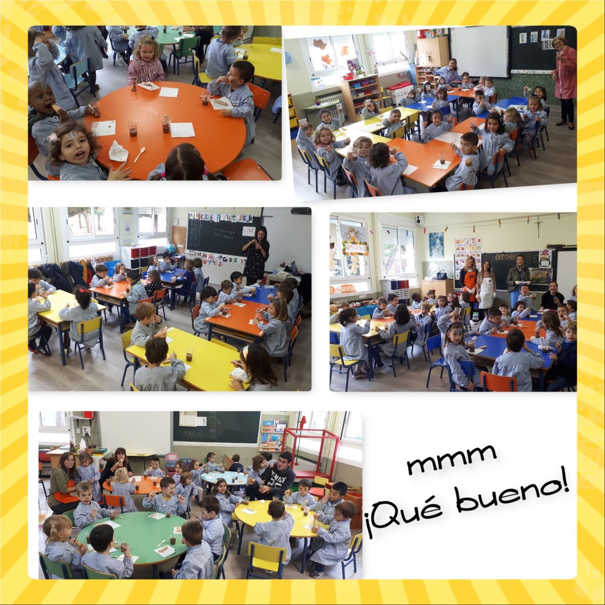 Y ¡por fin ha llegado el momento más esperado! Gracias a los miembros de la AMYPA de nuestro colegio y a las manos mágicas de la cara no visible de la pastelería Dueso, hemos saboreado un delicioso chocolate caliente con bizcochos. Nos hemos puesto hechos un cuadro pero…ha merecido la pena.