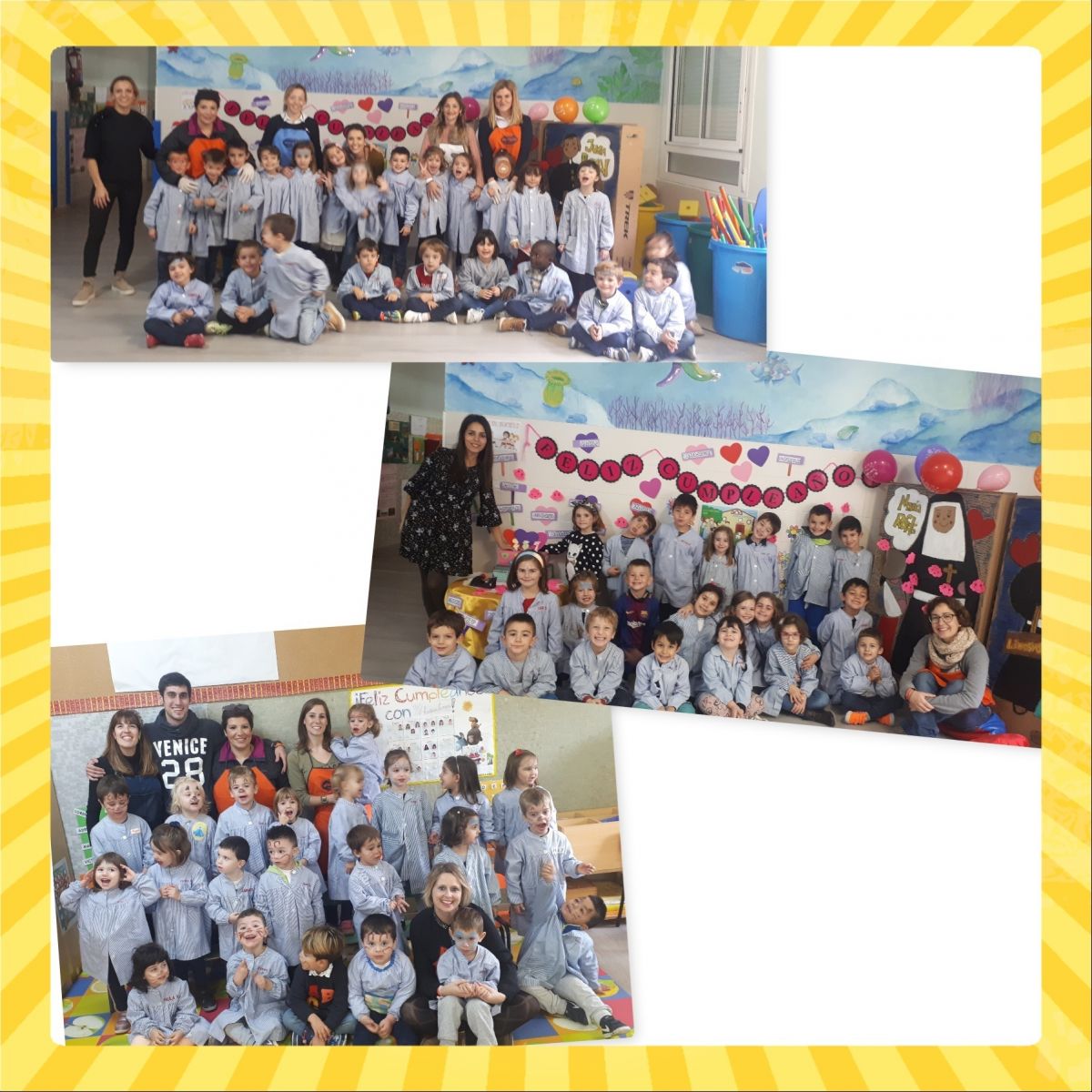 Los más pequeños, hemos empezado el día recordando su historia y celebrando su cumpleaños cantándole a pleno pulmón. Es evidente que no podían faltar nuestros pequeños regalos, los globos, la tarta e incluso las velas.