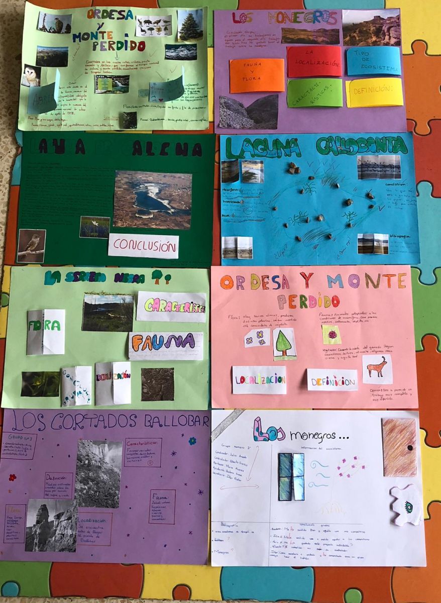 Una vez han tenido conocimientos teóricos generales relacionados con la temática, han sido ellos, a partir de grupos cooperativos, los que han buscado y contrastado la información a cerca de sus características, su localización, la flora y la fauna. Por último, lo han plasmado en unos bonitos murales.
