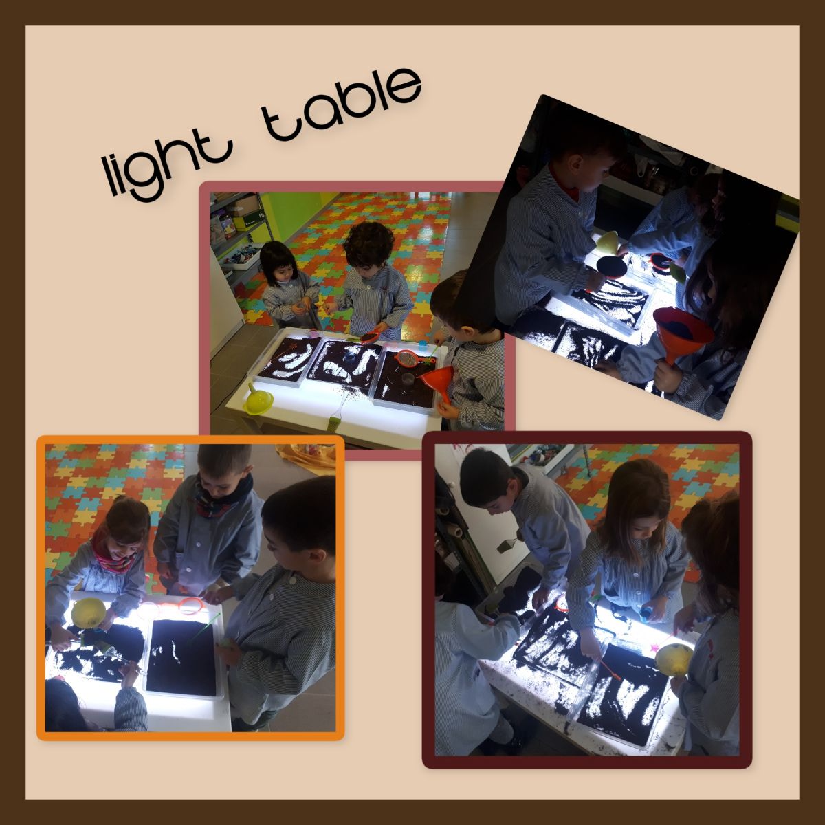 LA MESA DE LUZ: experimentamos con el café molido e investigamos su textura y posibilidades a través de la luz proporcionándonos diferentes perspectivas.