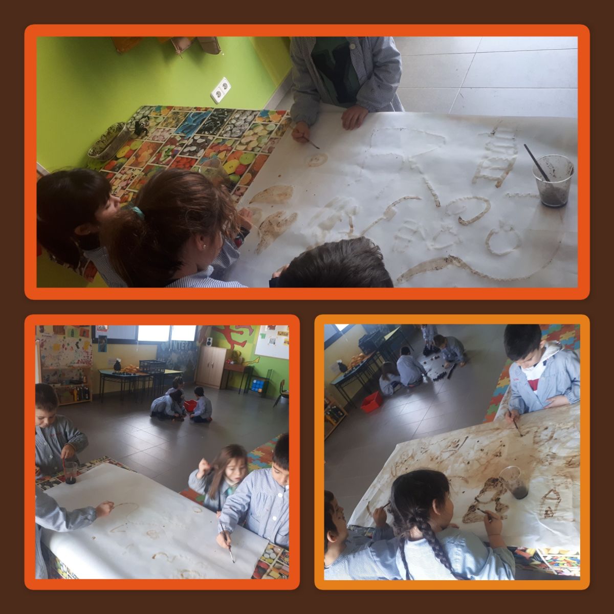 PINTURA LIBRE: utilizamos el café disuelto en agua para crear formas y descubrir tanto colores como olores.
