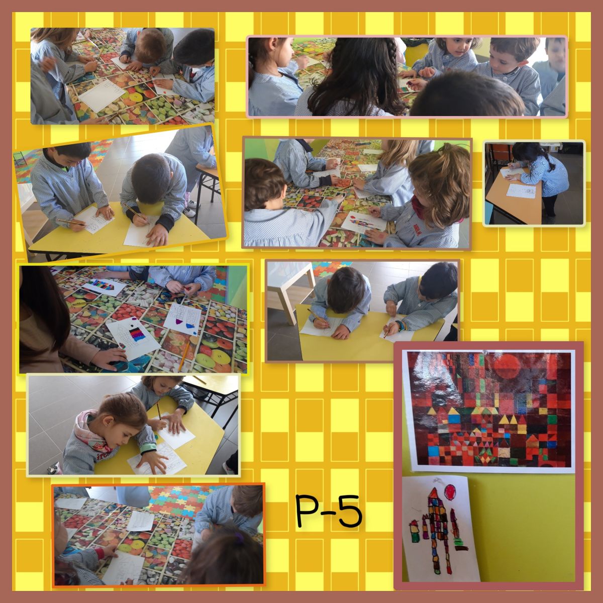 Por último, los más mayores de infantil hemos reproducido el cuadro Castle and sun. A través de él se ha trabajado las formas geométricas, los colores y la técnica de las ceras. Hemos tenido que poner en marcha todas nuestras habilidades artísticas para resolver este reto.