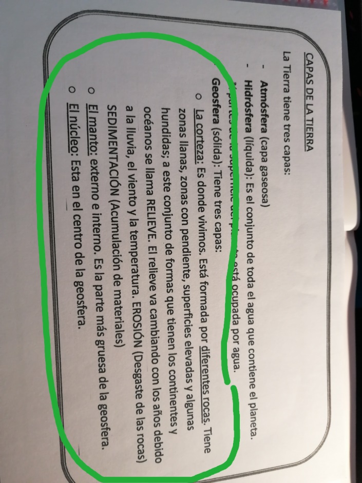 Leemos la información de la primera hoja que pegamos en el cuaderno de este tema sobre la Geosfera.
