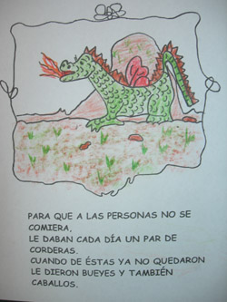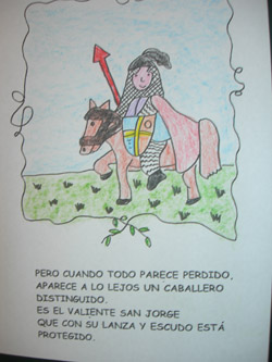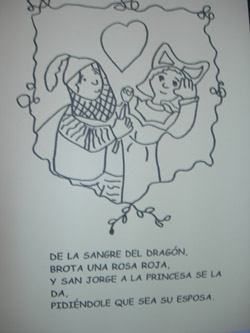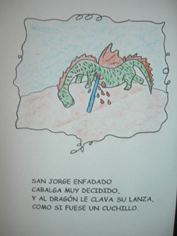 Así nos preparamos en E.I. para la llegada de San Jorge y el dragon, contamos la historia, jugamos con ella en el ordenador, pintamos, hacemos un murales....