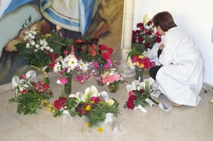 Los que tenían flores en sus huertas han traido un ramo para ofrecérselo a nuestra Madre del Cielo.