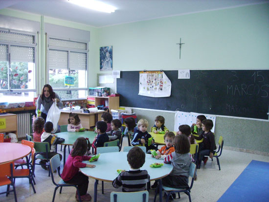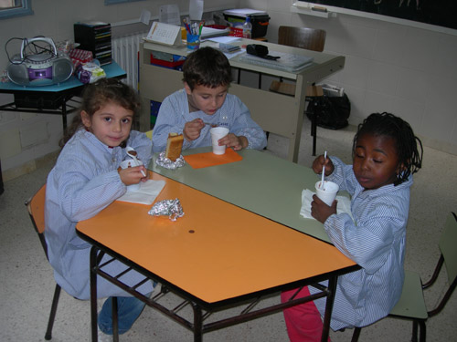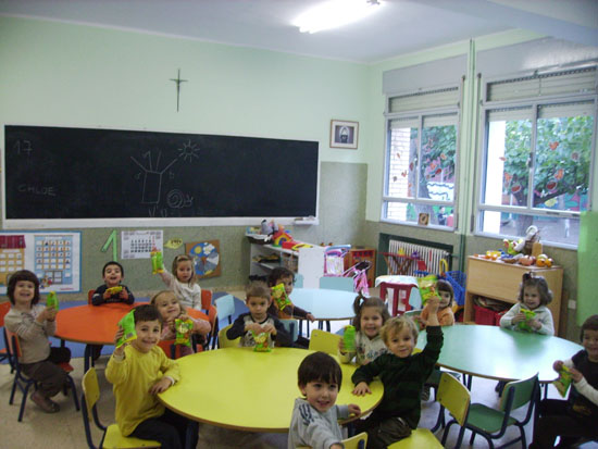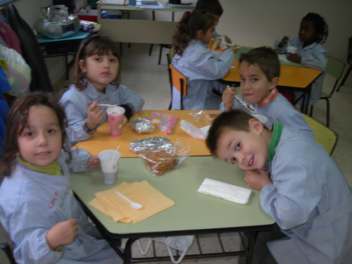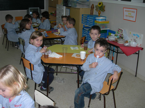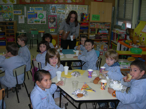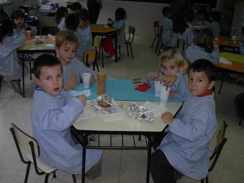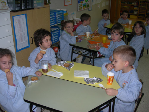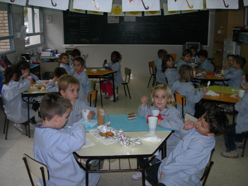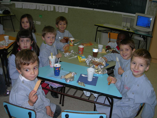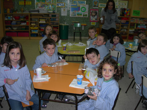 Y por la tarde baile, los de tres y cuatro años hemos comido gusanitos y probado un poco el chocolate y los de cinco años chocolate con galletas o bizcocho.