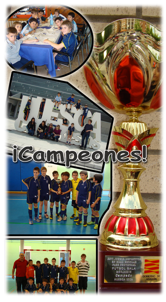 El equipo benjamín de Fútbol Sala, formado por Jorge Pueyo, Ernesto, Sergio Coll, Tomás, Felipe, Oscar, Dani, Andrés, Jorge Casanova, Sergio Martínez y Arturo, se proclamó el pasado fin de semana Campeón Provincial.
