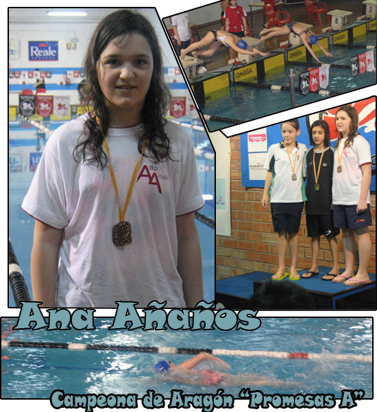 El domingo 14 de Marzo, en la tercera jornada del Campeonato de Aragón de Natación, ANA AÑAÑOS, alumna de 5º B, se proclamó campeona de natación en la categoría PROMESAS A.