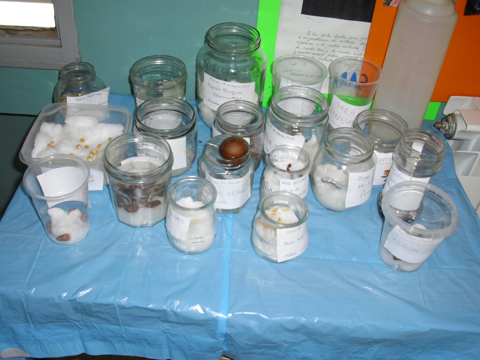 'UNA SOLUCIÓN: Los alumnos/as de 5º E.P. Hemos germinado diferentes semillas. Dado que cuando éramos pequeños lo hicimos con semillas de judías, garbanzos y lentejas, ahora experimentamos con piñones, maíz, tomates, calabazas, sandias y aguacate.