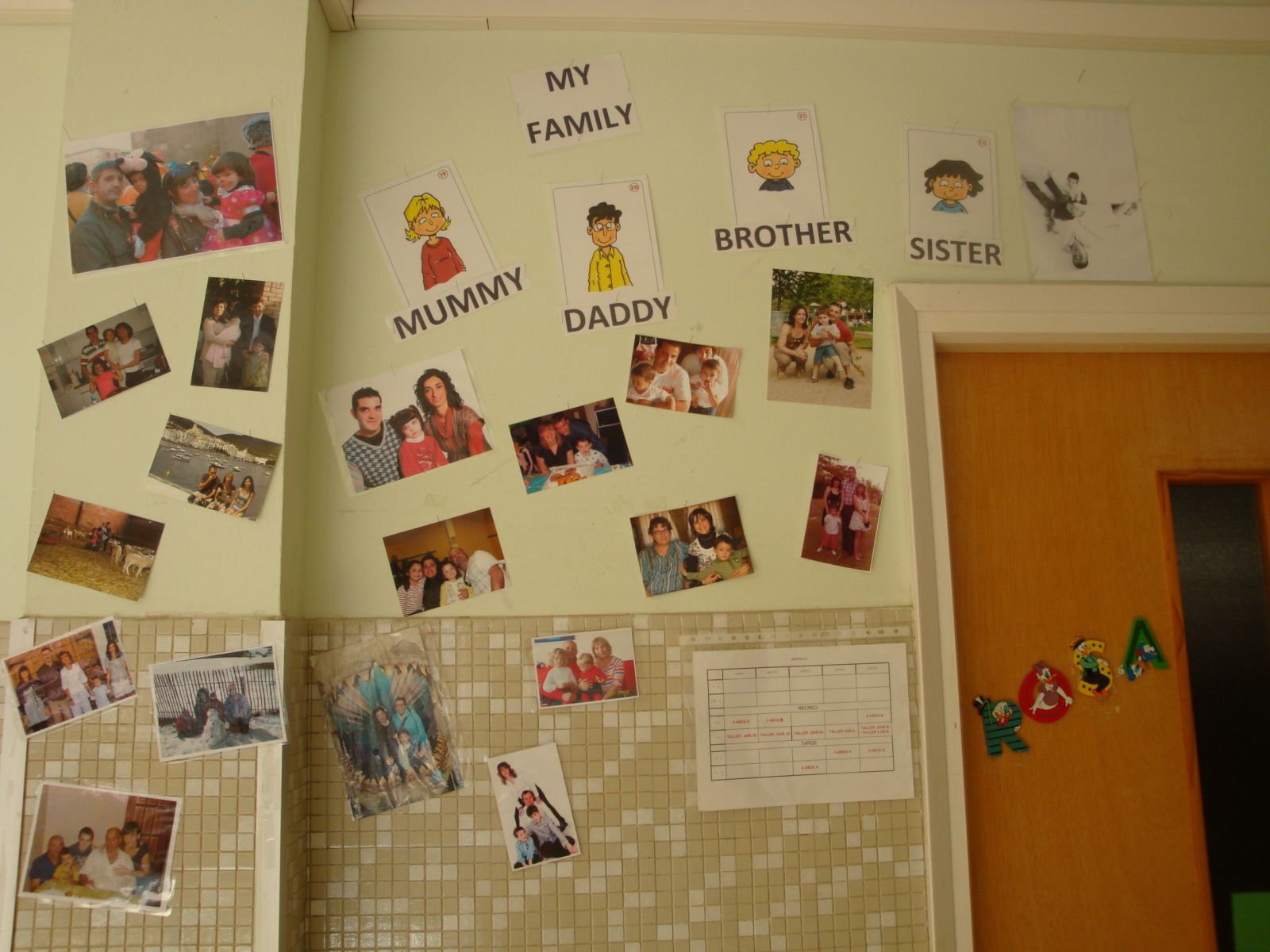 Los niños y niñas de P-4, hemos trabajado en inglés el tema de la família. Como muestra de todo lo aprendido, queríamos plasmar lo más importante para nosotros, nuestra propia família y este es el resultado de nuestra pequeña exposición. A parte de disfrutar de estas imágenes, supongo que vuestros hijos os hacen partícipes del día a día en el aula, cantando las canciones que aprendemos e intentando verbalizar todo aquello que asimilan y, por este motivo, queremos compartir con todos vosotros, nuestra nueva entrada al aula.