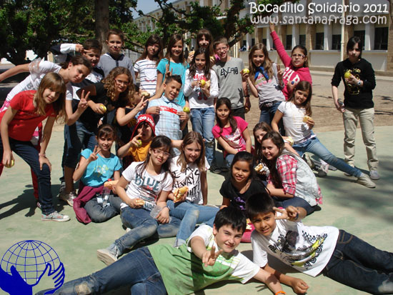 El día 15 de Abril realizamos en el Colegio la Campaña "BOCADILLO SOLIDARIO ", en ella participaron 340 alumnos y profes desde 3º de EP hasta 4º de ESO. Nuestra intención era concienciar y colaborar con el grupo parroquial de Manos Unidas. Los alumnos realizaron este gesto solidario de 4 euros a cambio de un bocata , una pieza de fruta y una chocolatina. Los de Primaria lo hicieron en el recreo del cole de 1 a 3 horas de la tarde y los de la ESO en el Sotet después después de la Jornada Deportiva.