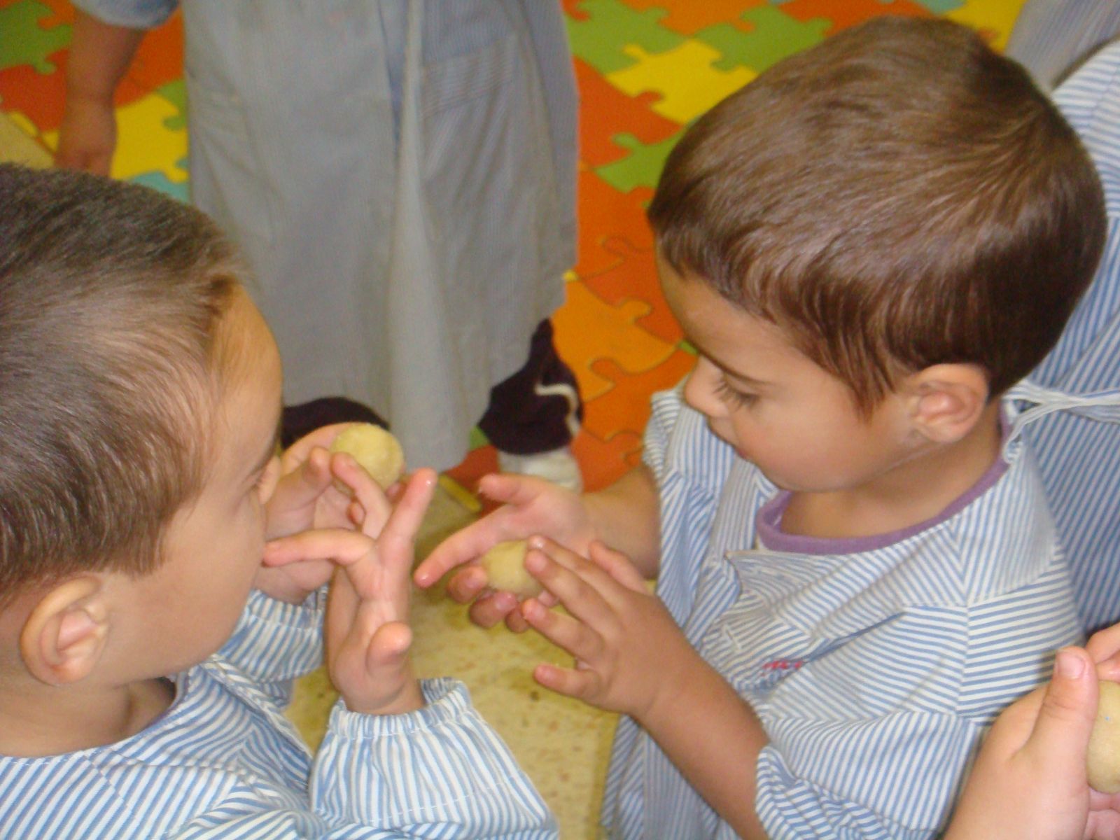 Después nos pusimos por grupos y nos repartimos la masa para hacer bolitas.