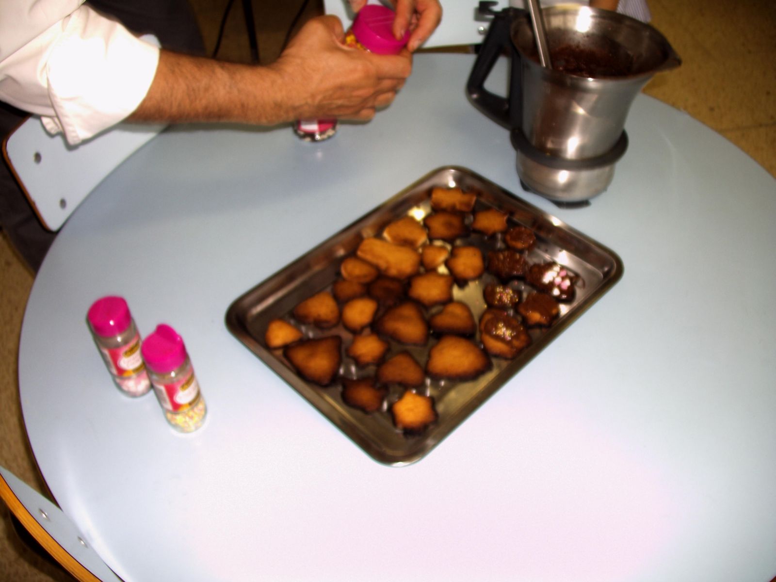 Hemos conocido los ingredientes, su origen y hemos experimentado con los cinco sentidos, las hemos amasado, hemos dado formas de figuras navideñas, las hemos puesto al horno, les hemos dado un baño de chocolate y las hemos decorado. Y por último: