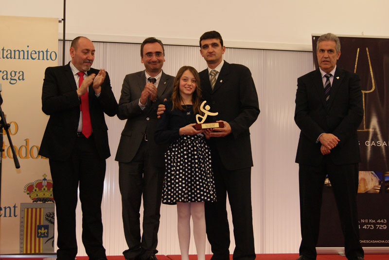 El pasado día 2 de Marzo se celebró la GALA DEL DEPORTE DE FRAGA, en la que el Colegío Santa Ana, recibió indirectamente en la figura de NOELIA HULUBAN el trofeo que concede el M.I. Ayuntamiento de Fraga a los mejores deportistas del año 2011.