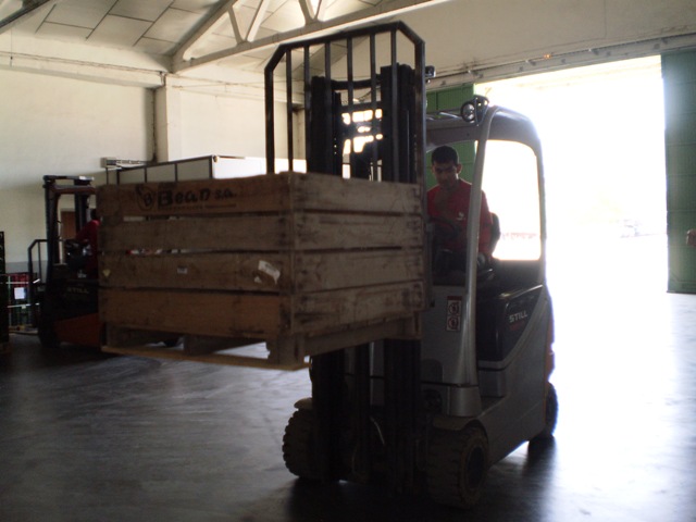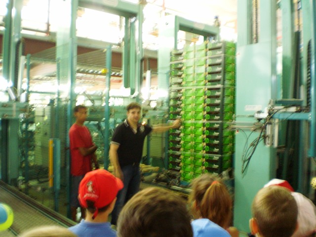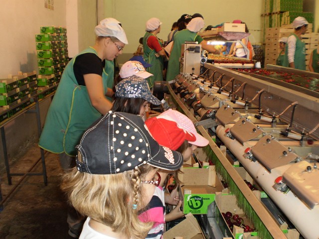Después nos enseñó el almacén y trabajamos mucho triando y apilando cerezas, entramos en una cámara que hacía mucho frío y hacía un eco impresionante. Subimos a la parte de arriba y vimos los mecanismos de las cámaras, también vimos como un robot frenaba cuando estábamos delante y ataba un palé de cajitas de cerezas sin ayuda de nadie. Finalmente volvimos a refrescarnos y volvimos al cole, pero ya cuesta abajo, fue ya menos cansado.