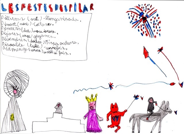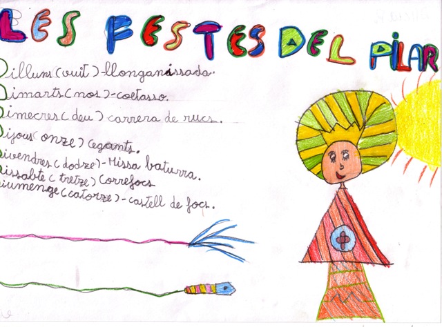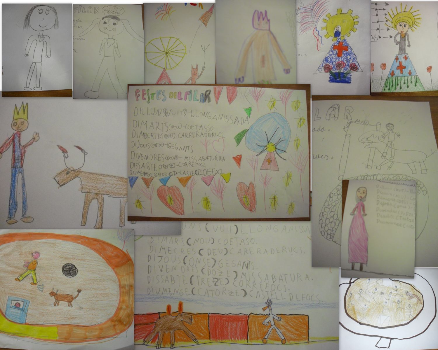 Els xiquets i xiquetes de Primer Cicle us desitgem que passeu unes Boníssimes Festes del Pilar a tots. Us posem uns dibuixos que hem fet a classe perquè sapigueu el que podem fer cada día en estes Festes.